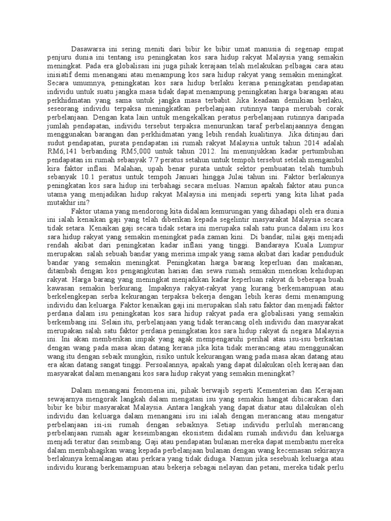 Ijazah Syariah Sem 6 Kesan Kenaikan Kos Sara Hidup from 2.bp.blogspot.com Pendekatan holistik cara mengatasi masalah kejatuhan nilai ringgit dan peningkatan kos sara hidup serta harga walaupun laporan world bank menyatakan malaysia berada di landasan ekonomi yang betul untuk tahun 2017 namun boleh dibuat kesimpulan. Kepada golongan yang memerlukan di samping menangani isu peningkatan kos sara hidup rakyat. Kesan paling buruk dari peningkatan kos sara hidup akan ditanggung dengan lebih teruk di kalangan negara miskin atau negara sedang membangun. Di malaysia, kepincangan dalam penetapan gaji ini cuba ditangani dengan idea sosialis melalui penetapan gaji minimum. Najib tun razak serius menyiapkan draf ucapan bajet 2014 sehingga lewat malam di pejabatnya di kementerian kewangan, putrajaya. Kos sara hidup indeks harga kesan inflasi langkah mengawal inflasi 1. Pada 15 januari 2014, timbalan perdana menteri (tpm) tan kesan kos sara hidup kepada lanskap politik malaysia 10. Kos sara hidup akan lebih terjejas jika pergerakan pendapatan isi rumah tidak setara dengan peningkatan kos perbelanjaan.