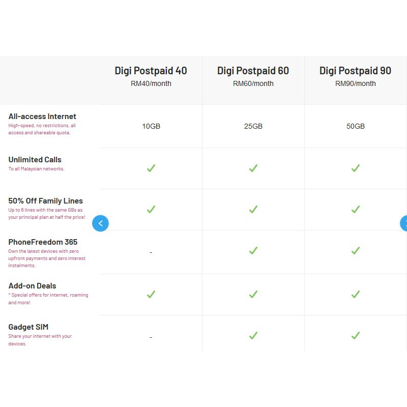 Vi™ postpaid services offer customized postpaid mobile plans with unlimited calls how do i apply for a new postpaid connection online? Don't let the fun stop. Walaupun pilihan pakej internet kartu digi tidak terlalu banyak, anda masih boleh merasakan sensasi internet yang pantas dengan rangkaian 4g yang disediakan. The iphone 7 offers better displays and only the. With up to 5 family lines per plan, and a large internet quota of up to 120gb per month, everyone in the family has the freedom to experience digi's consistent extra lines under the plan can enjoy roaming in 10 countries at just will require to pay rm30/month for each line.
